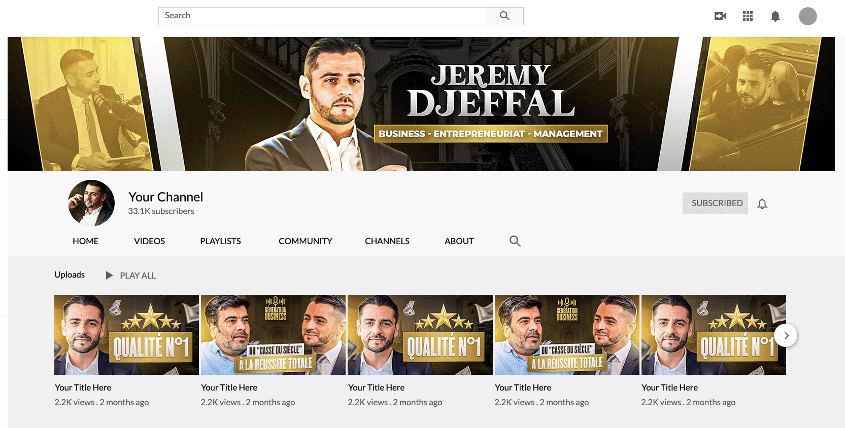 Bannière pour chaîne Youtube